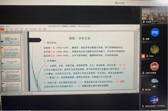 “史学名家讲座”系列第111期《16世纪以来西方冲击下日本的嬗变与中日关系》以线上腾讯会议的方式举行。本次讲座由北京大学历史学系宋成有教授主讲,本院罗敏老师主持。性爱影片